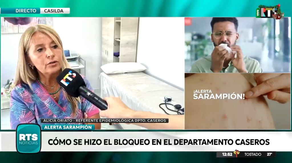 Alicia Oriato, referente epidemiológica del departamento de Caseros, confirmó que se activó una alerta sanitaria luego de que un niño con sarampión diagnosticado en Entre Ríos permaneciera 24 horas en la provincia. La funcionaria señaló que se trabaja en el análisis de los posibles contactos y en el seguimiento de la situación sanitaria del caso y su entorno.