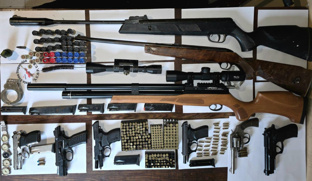En los operativos se secuestraron cinco armas de fuego de calibres 9 milímetros, .22, .38 y .45; tres rifles modificados para utilizar munición calibre .22; y una pistola de aire comprimido. También se incautaron 381 municiones de distintos calibres, herramientas, materiales de construcción y otros elementos relevantes para la causa.