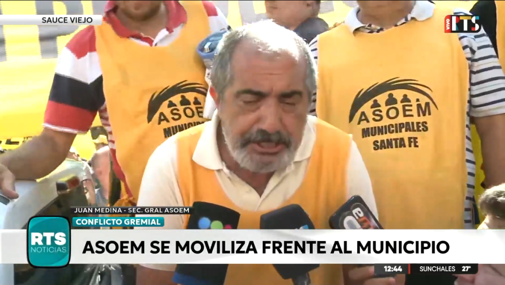 El secretario general de Asoem, Juan Medina, se refirió a la medida de fuerza que lleva adelante el gremio y planteó como condición para avanzar en una negociación la devolución del presentismo y de dos días descontados a trabajadores municipales de Sauce Viejo.