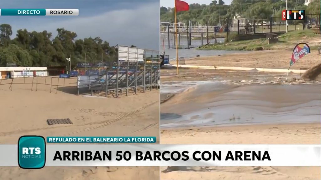 Arriban 50 barcos con arena para ampliar la playa del balneario La Florida en Rosario