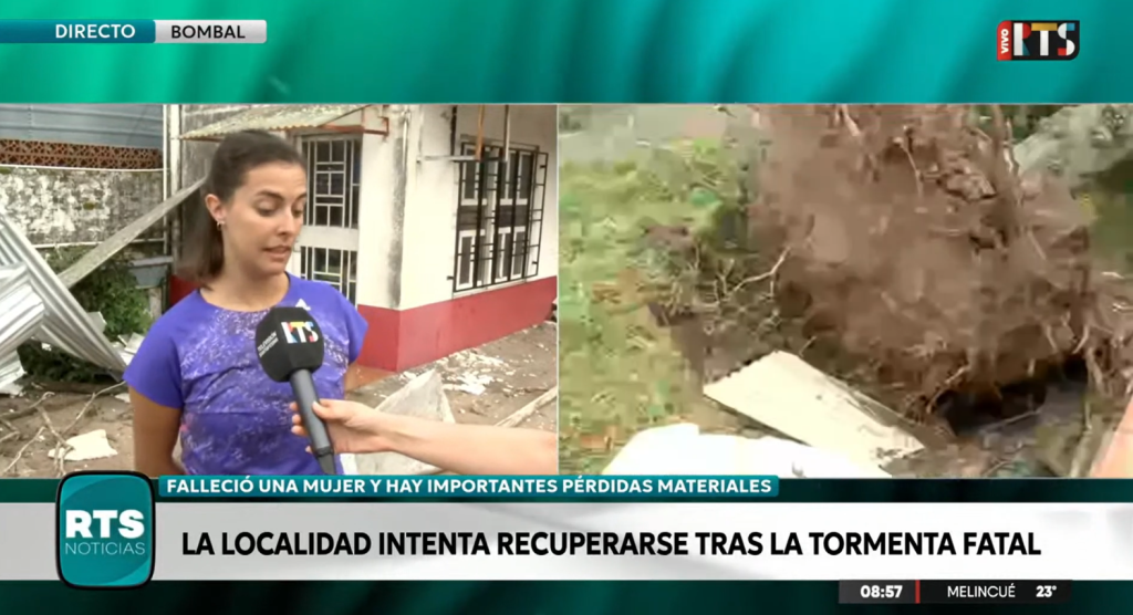 El temporal que se registró en la madrugada del sábado en Bombal dejó como saldo una mujer fallecida, importantes daños materiales y múltiples sectores afectados, entre ellos una empresa familiar que sufrió pérdidas casi totales, según relató una vecina de la localidad.
