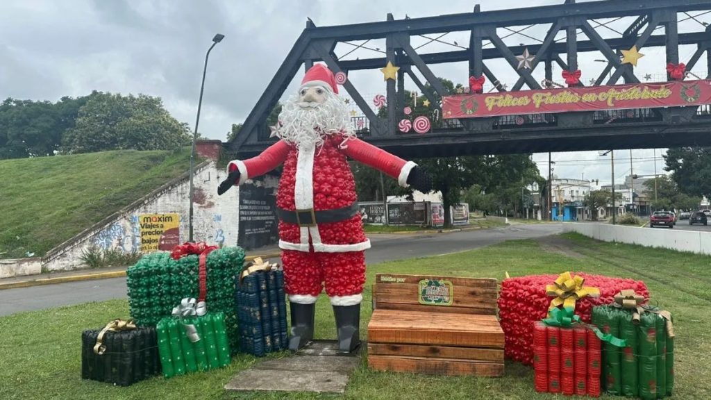 Vecinas de la Asociación de Aristóbulo del Valle realizaron un Papá Noel con botellas y plásticos reutilizados. “La idea nació