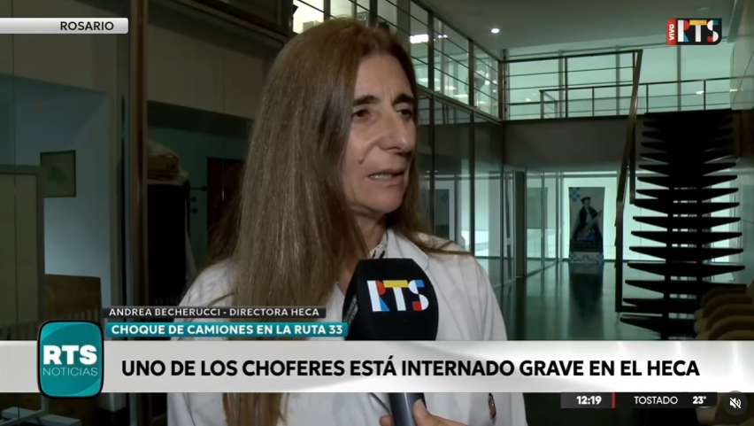 La directora del hospital, Andrea Becherucci, explicó que el paciente ingresó durante la tarde del día del siniestro con un cuadro complejo. “Ingresó con un politraumatismo grave, con traumatismo cráneofacial, traumatismo de tórax y fracturas en los miembros. Es un paciente crítico que está en la terapia intensiva, en asistencia mecánica ventilatoria y en sedación”, detalló.