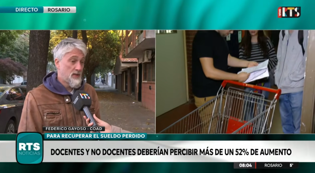 En relación a la situación salarial, indicó que un docente con dedicación exclusiva percibe menos de un millón de pesos. “Con menos de un millón de pesos no se puede vivir”, afirmó, y agregó que muchos trabajadores deben buscar ingresos adicionales fuera de la actividad académica.