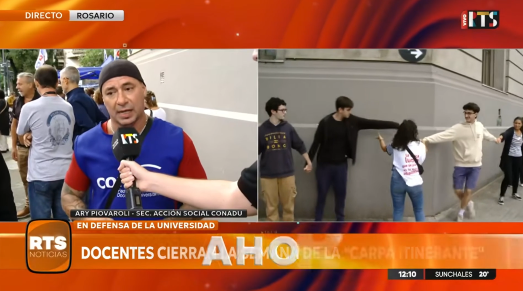 Ari Piovaroli, secretario de Acción Social de Conadu, explicó que las medidas buscan exponer el impacto del ajuste sobre docentes, no docentes, estudiantes y funcionamiento institucional. “La idea de las carpas es visibilizar la situación en la que se encuentra el sistema universitario”, sostuvo. Además, señaló que buscan interpelar a la comunidad y sumar respaldo social al reclamo.
