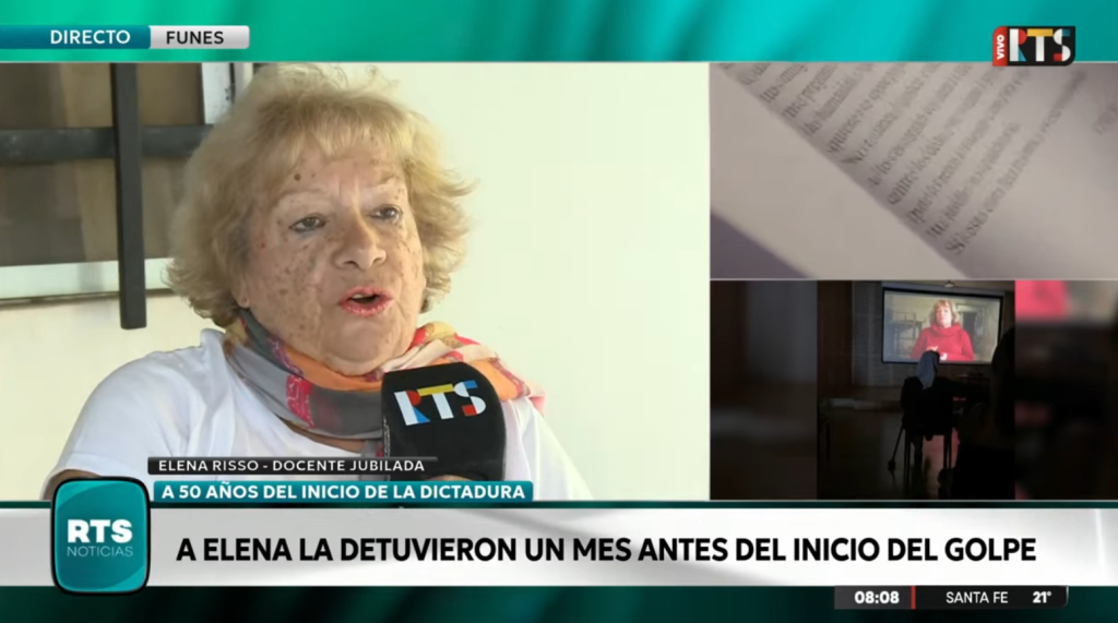 A 50 años del golpe de Estado del 24 de marzo de 1976, Elena Risso, docente oriunda de Firmat, reconstruyó su historia como detenida en los meses previos al inicio de la dictadura y reflexionó sobre la importancia de la memoria en el presente, en el marco de una entrevista realizada en Funes.