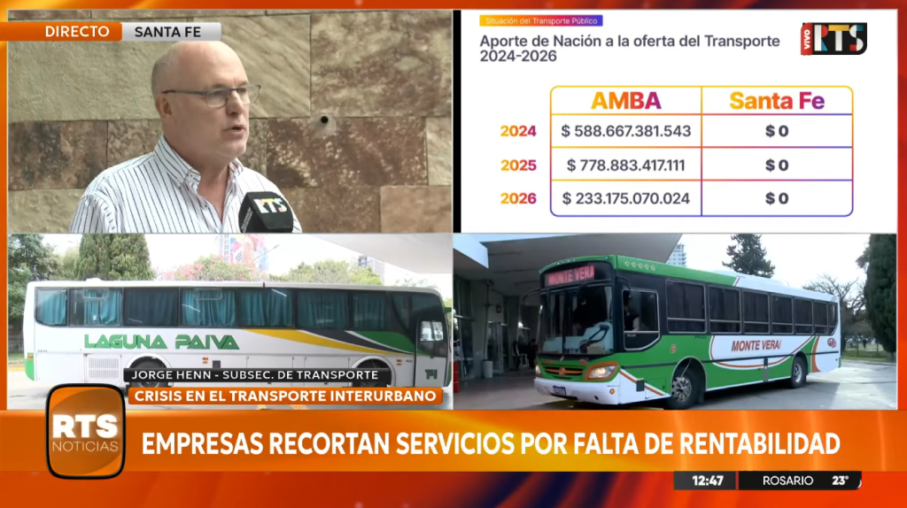 El subsecretario de Transporte de Santa Fe, Jorge Henn, cuestionó la política nacional de financiamiento al transporte público y aseguró que la provincia no recibe subsidios directos mientras continúa aportando recursos propios para sostener el sistema. El funcionario planteó que la situación se agrava por el incremento del combustible y por deudas vinculadas a programas nacionales.