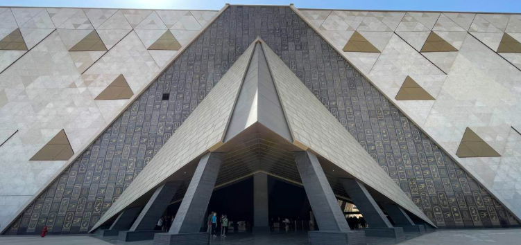 Su arquitectura —ideada por el estudio irlandés Heneghan Peng— está pensada como una prolongación racional de las pirámides. Entre sus 167.000 metros cuadrados no solo se alberga la colección faraónica más ambiciosa jamás mostrada en un solo edificio; también zonas educativas, cafés, un cine 3D, salas de conferencias y casi una veintena de laboratorios de restauración conectados al núcleo principal como arterias.