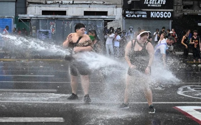 Desde el mediodía comenzaron a concentrarse manifestantes en las inmediaciones del Congreso como parte del paro general contra la reforma laboral que se debatía en la Cámara de Diputados, pese a que la conducción de la CGT había llamado a una huelga sin movilización.