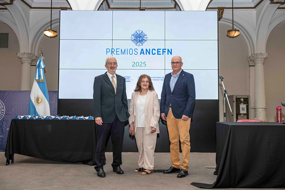 La Academia Nacional de Ciencias Exactas, Físicas y Naturales (ANCEFN) entregó los premios ANCEFN edición 2025 en una emotiva ceremonia celebrada en el Palacio Pizzurno, sede de la Secretaría de Educación. Estuvo encabezada por la investigadora del CONICET y presidenta de ANCEFN, Alicia Dickenstein. En esta oportunidad, se reconoció a investigadores del Consejo en las categorías Premios Estímulo y Premios Consagración en las áreas de Matemáticas, Física, Astronomía, Ciencias de la Ingeniería y Tecnología y Ciencias Químicas, de la Tierra y Biológicas.