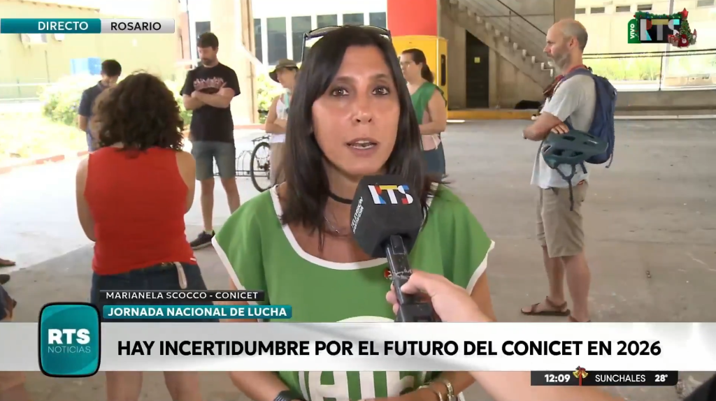 Investigadoras del Conicet realizaron una jornada nacional de lucha para visibilizar el reclamo por la ausencia de financiamiento, el congelamiento salarial y la falta de convocatorias a carrera. La investigadora Marianela Scocco explicó desde Rosario que el organismo lleva dos años sin renovar ingresos y sin recursos para sostener las tareas cotidianas.