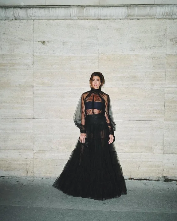 La empresaria textil lució un vestido que reúne las últimas tendencias de este año en una sola prenda, captando a la perfección la esencia de la alta costura contemporánea.