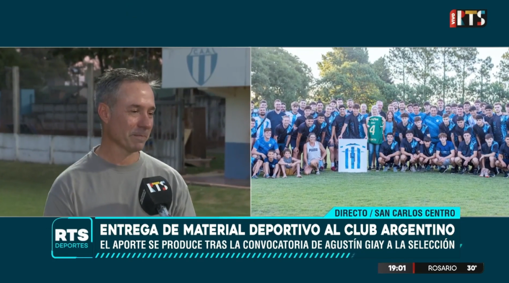 La familia del futbolista Agustín Giay realizó una donación de material deportivo al Club Argentino de San Carlos, destinada a las categorías formativas, en un acto que también incluyó información sobre los ingresos económicos que recibió la institución.