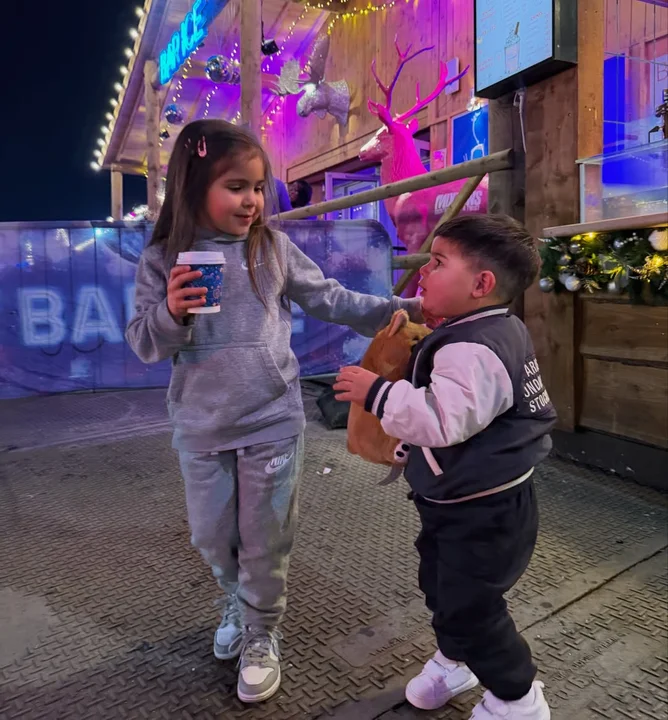 En tanto, los hijos de la pareja degustaron bebidas calientes, churros y probaron su suerte en los juegos del Festival, mientras aprovechan el receso escolar por las vacaciones de Navidad.