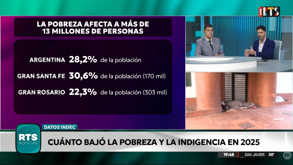 A nivel regional, los datos muestran diferencias entre los principales aglomerados de la provincia de Santa Fe. En el Gran Santa Fe, la pobreza alcanzó el 30,6%, mientras que en el Gran Rosario se ubicó en 22,3%, por debajo del promedio nacional. En ambos casos se registraron descensos respecto al año anterior.