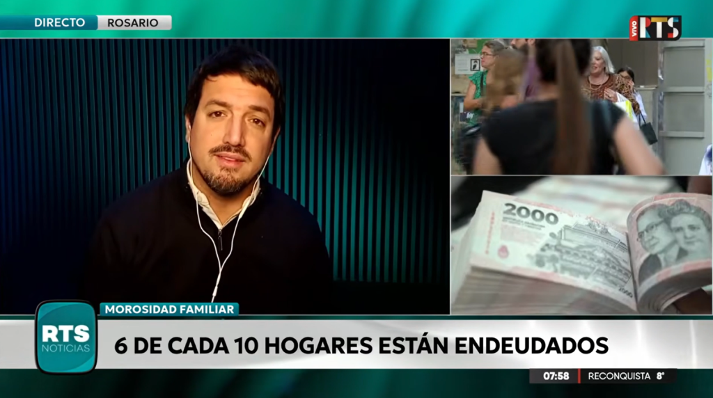 De acuerdo al análisis, el endeudamiento promedio por hogar alcanza los $5.702.800, lo que equivale a casi cuatro salarios promedio del sector registrado. “Seis de cada diez familias argentinas hoy están endeudadas”, explicó Patricio Dobal.