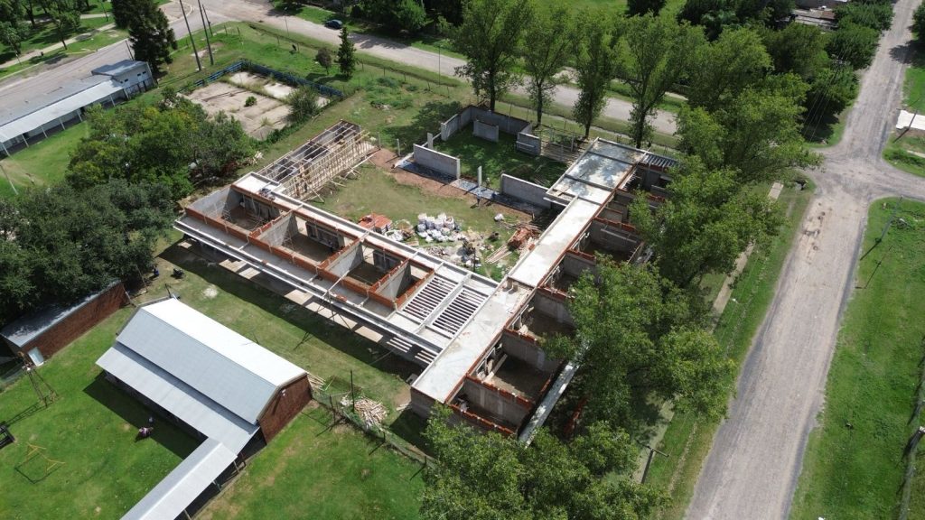 Actualmente, la empresa Capaze SRL está desarrollando tareas para la ejecución de la estructura de hormigón en el sector de galerías, mampostería y aplicación de revoques y contrapisos de las futuras aulas.