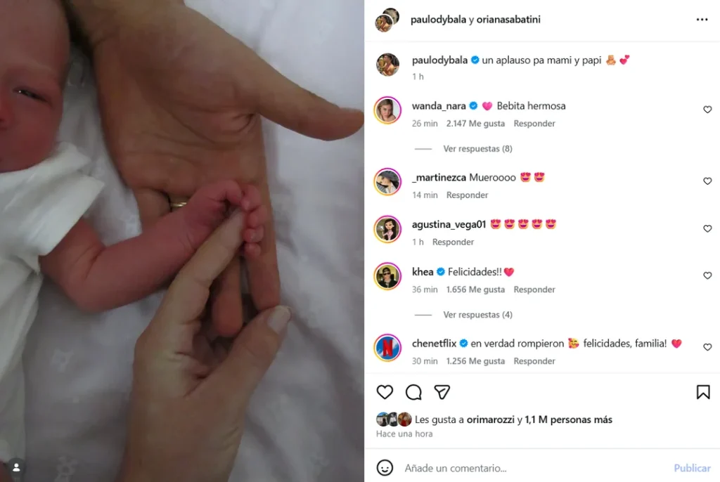 El futbolista Paulo Dybala y la actriz Oriana Sabatini le dieron la bienvenida a su esperada bebé, a quien llamaron Gia, esta mañana en Roma, Italia, lugar donde residen desde hace años.