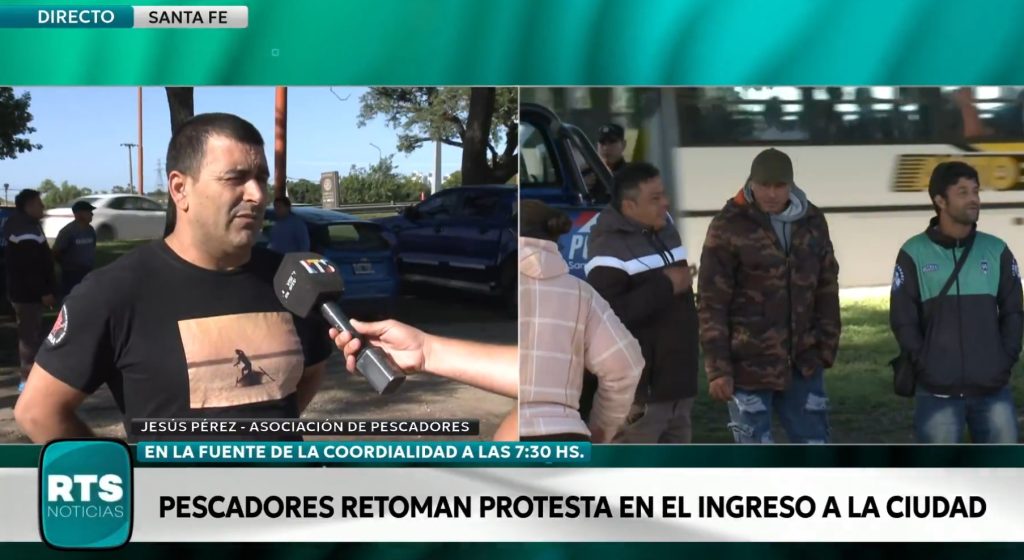 Pescadores artesanales volvieron a manifestarse este lunes en el acceso a la ciudad de Santa Fe con un corte parcial sobre la ruta nacional 168, a la altura de la Fuente de la Cordialidad. En diálogo con RTS Medios, Jesús Pérez explicó que la protesta se sostiene ante la falta de definiciones sobre la medida de suspensión de exportaciones, que dejó sin ingresos a trabajadores que viven de la venta diaria.