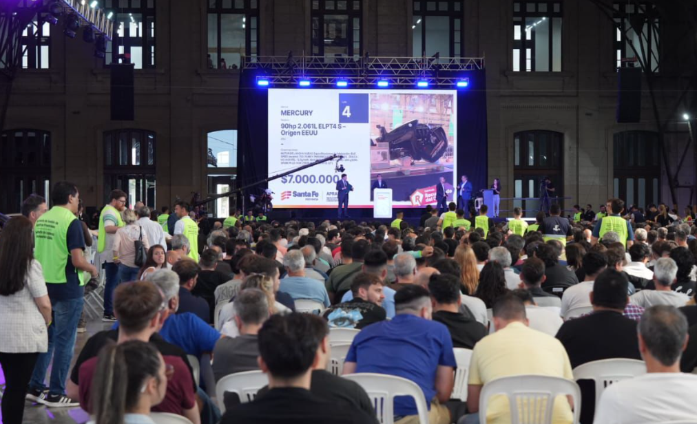 El gobernador Maximiliano Pullaro participó este jueves de la cuarta subasta de bienes decomisados al delitos, que realizó la Agencia Provincial de Registro, Administración y Destino de Bienes y Derechos Patrimoniales (Aprad), de la que participaron 3.910 personas de todo el país para adquirir 157 lotes de vehículos, inmuebles, joyas, celulares, materiales de construcción y electrodomésticos.