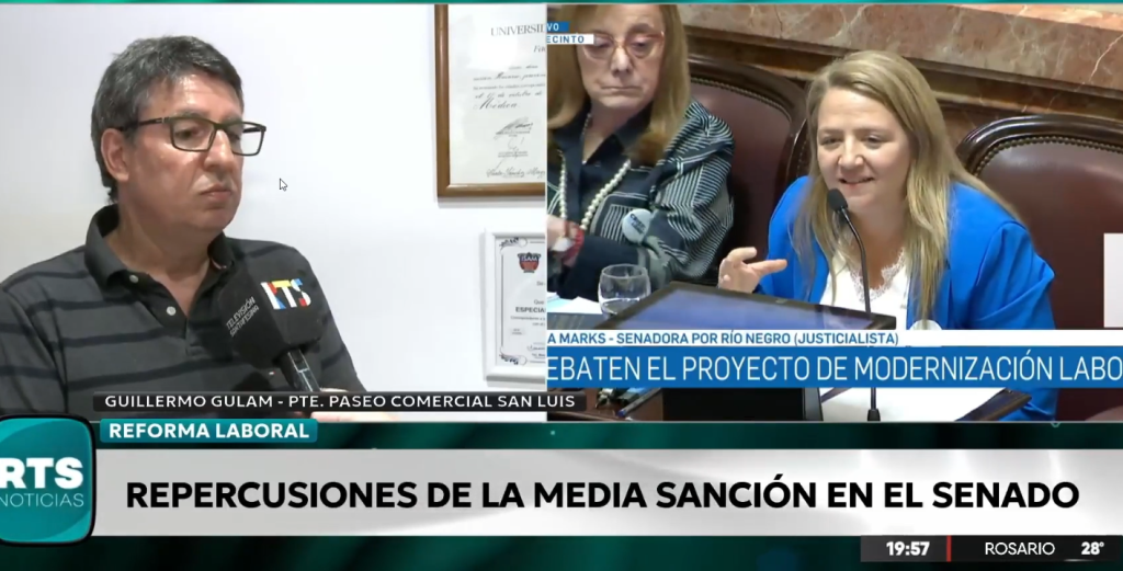 Guillermo Gulam, presidente del paseo comercial de calle San Luis, se refirió al debate sobre la reforma laboral y consideró que es necesaria una adecuación normativa. Señaló que algunos aspectos aprobados pueden favorecer al sector, en especial en lo relacionado a la organización de la jornada y al esquema de indemnizaciones.