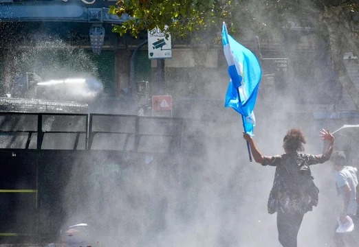 Momentos de tensión se registraban este viernes entre la Policía Federal y los manifestantes en las inmediaciones del Congreso, donde los senadores debatían la nueva Ley Penal Juvenil y la reforma laboral.