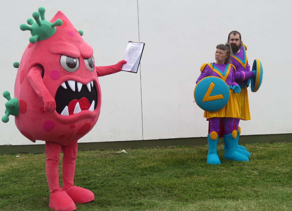 Previamente, participaron de una intervención artística que retoma el universo narrativo de Vax Team: una historia en la que los virus y bacterias son los villanos, y los chicos y chicas, al vacunarse, se transforman en superhéroes que se suman a un equipo para proteger a la comunidad.